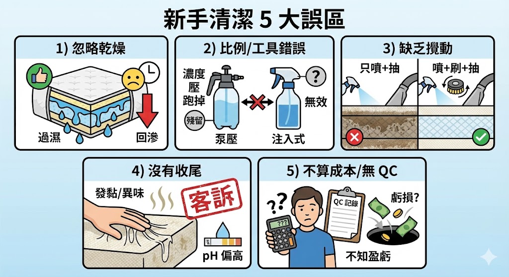 把床墊/布沙發/地毯做成一門能長期接案、能被信任、能穩定獲利的技術,會遇到三個現實問題: